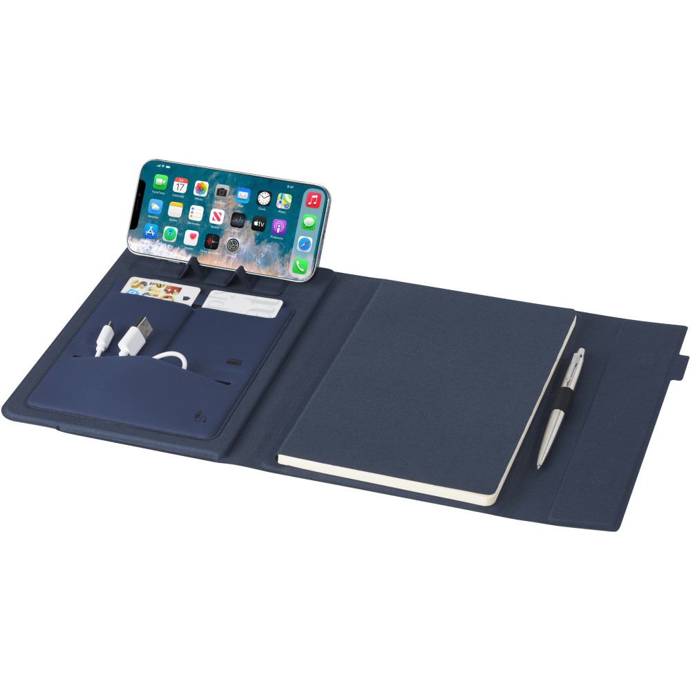 Az RCS tanúsítvánnyal rendelkező Liberto padfólió részben újrahasznosított poliészterből készül, így ez a padfólió fenntarthatóbb választás, mivel segít csökkenteni az új nyersanyag felhasználását. Tollhurokkal, harmonikazsebbel és 64 krémszínű, vonalas, fenntartható forrásból származó, 80 g/m2-es, újrahasznosított lappal rendelkezik. A képeken látható toll és egyéb kiegészítők nem tartoznak a termékhez. Emblémázás: Tamponnyomás