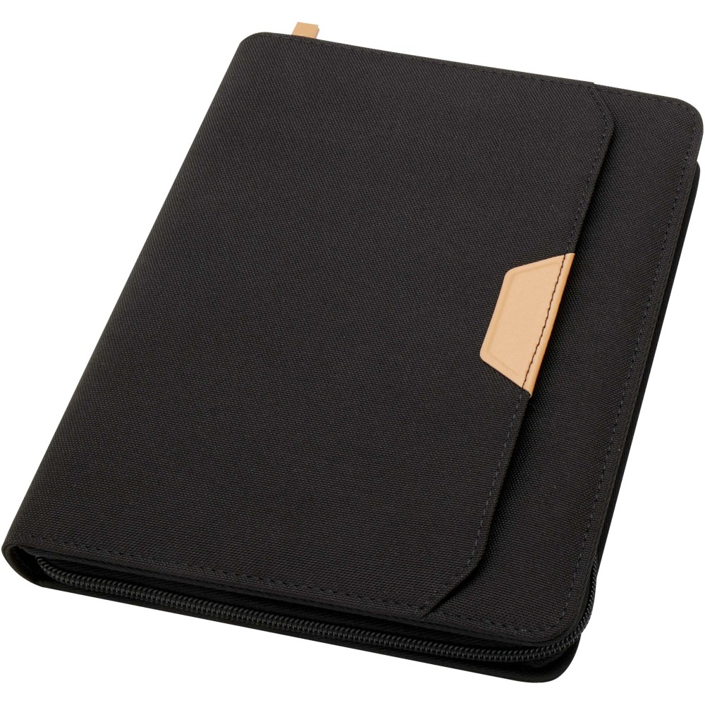 A Nomumi A5 portfólió lekerekített sarkú, újrahasznosított műanyagból készült, praktikus irodai alapdarab. 64 db krém színű, 80 g/m2 vonalas lapot tartalmaz, cipzáros záródással, tollhurokkal és egy zsebbel rendelkezik. Emblémázás: Szitanyomás