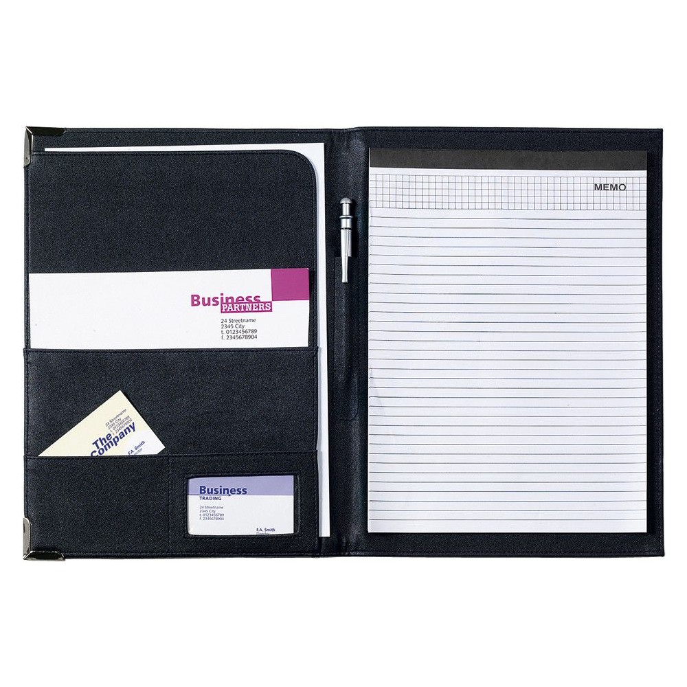 A4-es műbőr mappa fém sarokkal, fekete/arany