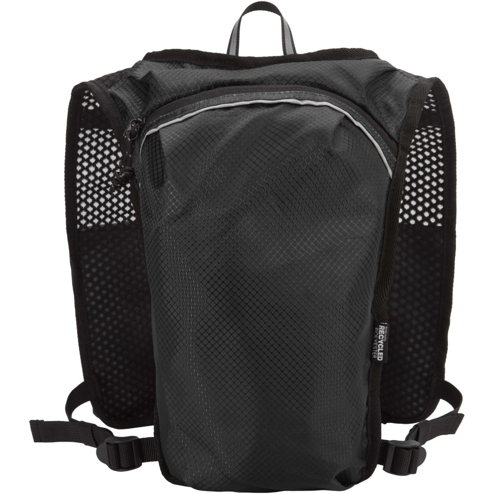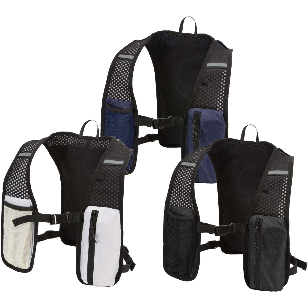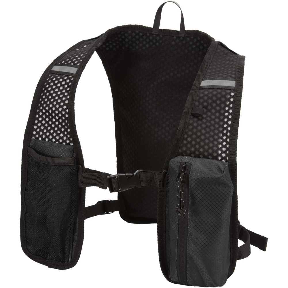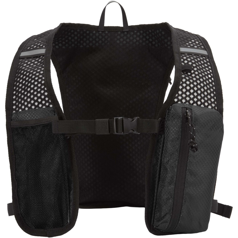 A Nomad futó hidratáló mellény GRS tanúsítvánnyal rendelkező, újrahasznosított ripstop anyagból készült, vízlepergető felülettel. Bélése GRS tanúsítvánnyal rendelkező RPET, valamint fényvisszaverő elemek növelik a láthatóságot. Hosszútávfutáshoz, terepfutáshoz és könnyű szabadtéri tevékenységekhez tervezték. Hátul légáteresztő hálós kialakítás biztosítja a kényelmet, az állítható vállpántok és az elülső mellzsebek pedig ideálisak kulacsok, kisebb kiegészítők vagy mobiltelefon tárolására. Belsejében külön rekesz található egy 1,5 literes hidratáló tasak számára (nem tartozék). Űrtartalom: 5 liter. Emblémázás: Szitanyomás