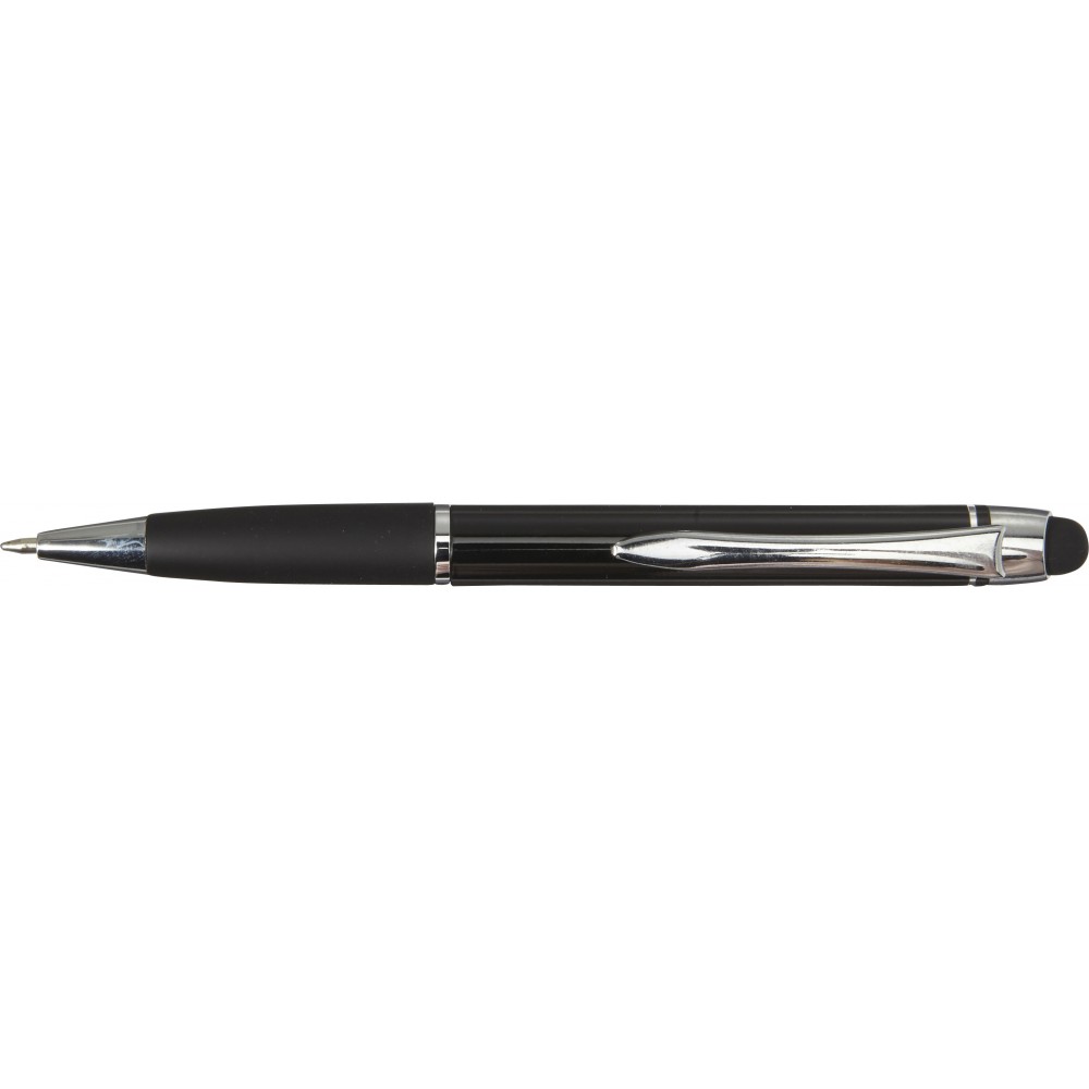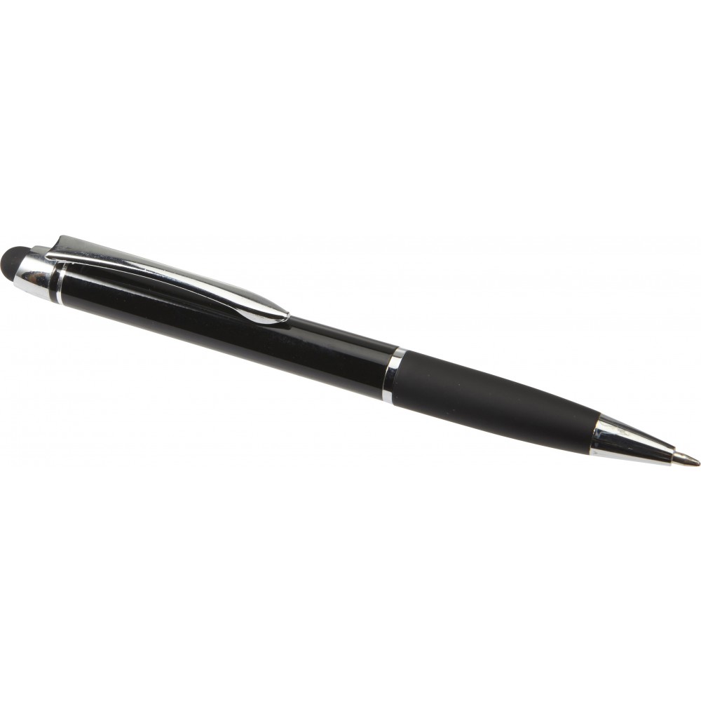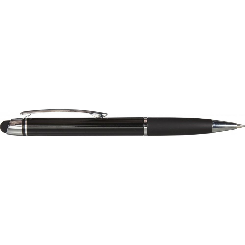 Golyóstoll érintővel, fényes felülettel, színben illeszkedő gumis fogórésszel, fényes ezüst kiegészítőkkel, fekete tollbetéttel. Alumínium. Emblémázás: Gravírozás, Tamponnyomás, UV nyomtatás
