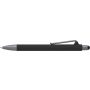 Golyóstoll gumis bevonattal, érintővel, kék tollbetéttel. ABS, PP műanyag, szilikon, vas. Emblémázás: UV nyomtatás