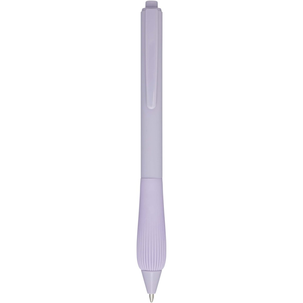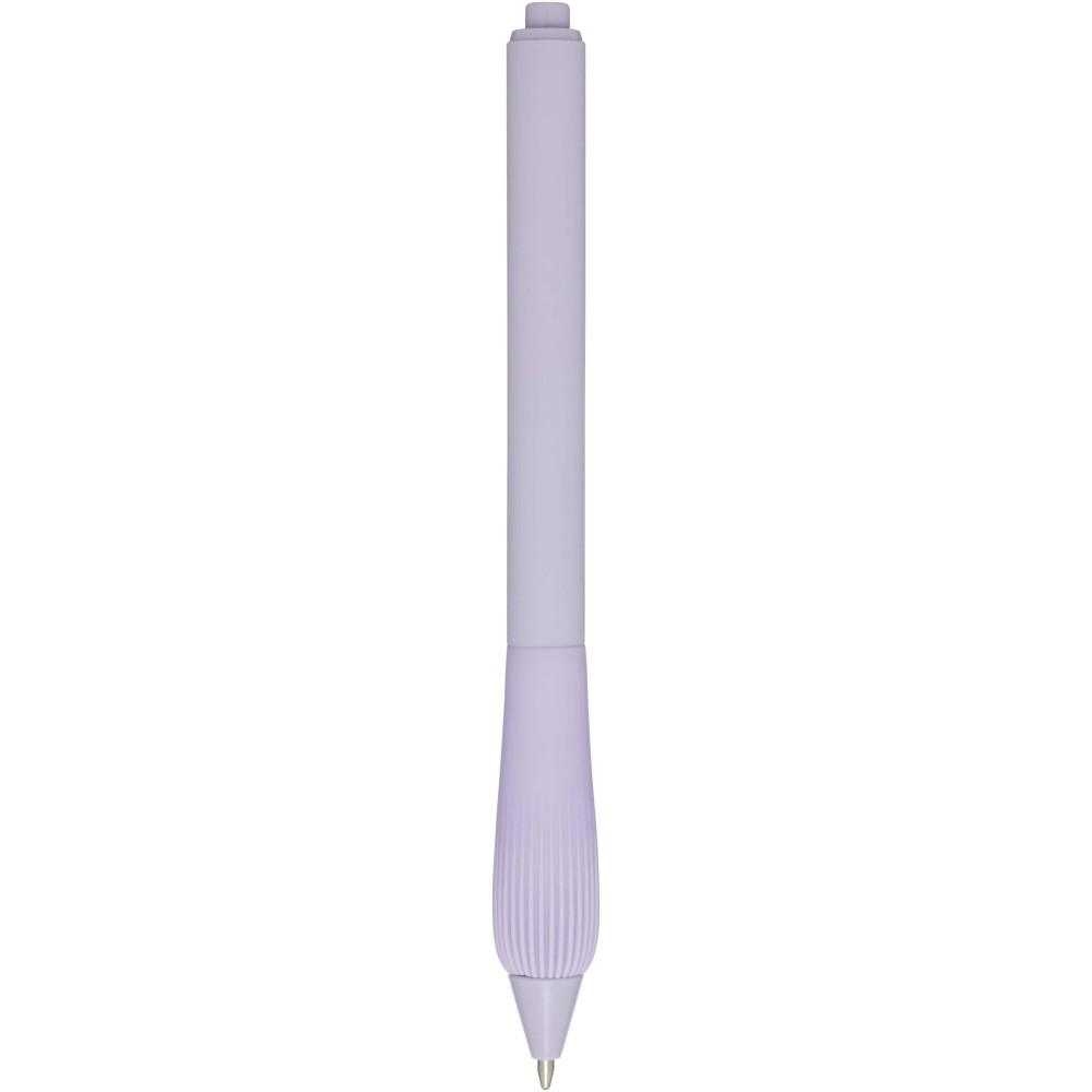 Újrahasznosított műanyag golyóstoll gumírozott tolltesttel és TPR anyagból készült fogórésszel. Fekete tollbetéttel. Írási hossz: 1000 méter. Hegyméret: 1,0 mm. Emblémázás: Tamponnyomás