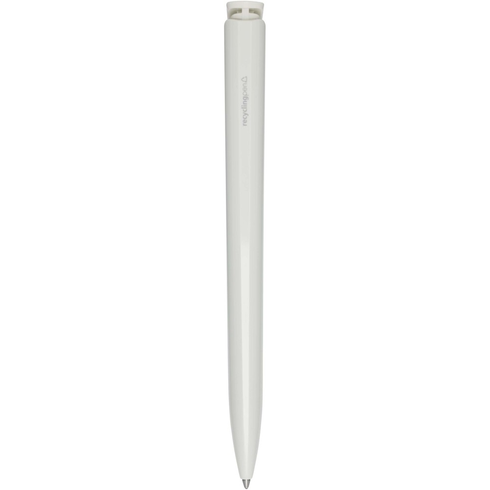 Golyóstoll, amelynek teste és klipsze újrahasznosított műanyagból készült, a hegy pedig rozsdamentes acélból. Kék tollbetéttel. Íráshossz: 3000 méter. Hegyméret: 1,00 mm. Németországban készült. Emblémázás: Tamponnyomás