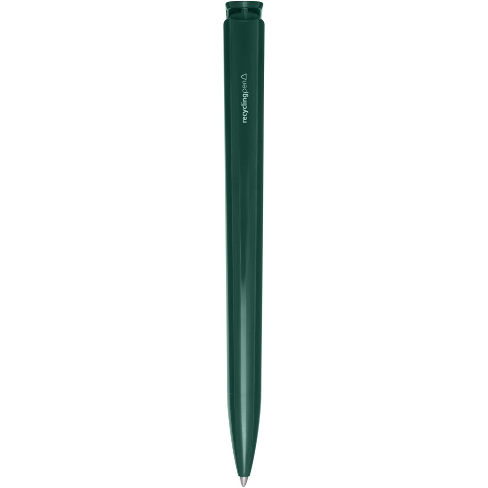 Golyóstoll, amelynek teste és klipsze újrahasznosított műanyagból készült, a hegy pedig rozsdamentes acélból. Kék tollbetéttel. Íráshossz: 3000 méter. Hegyméret: 1,00 mm. Németországban készült. Emblémázás: Tamponnyomás