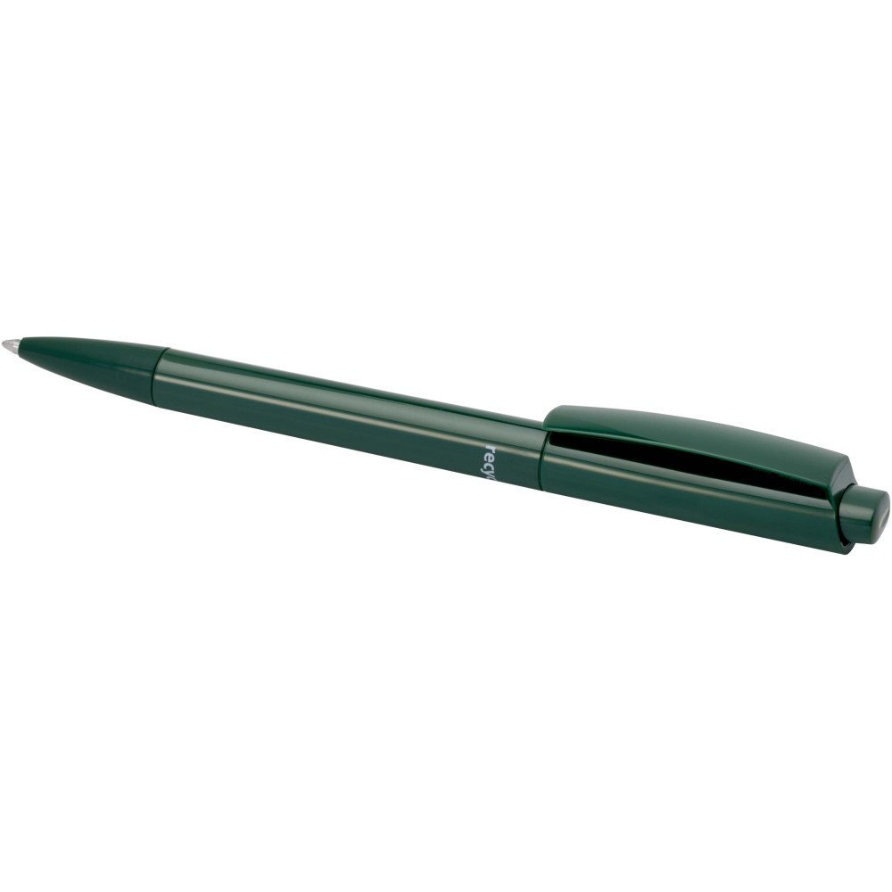 Golyóstoll, amelynek teste és klipsze újrahasznosított műanyagból, hegye pedig rozsdamentes acélból készült. Kék tollbetéttel. Íráshossz: 3000 méter. Hegyméret: 1,00 mm. Németországban készült. Emblémázás: Tamponnyomás