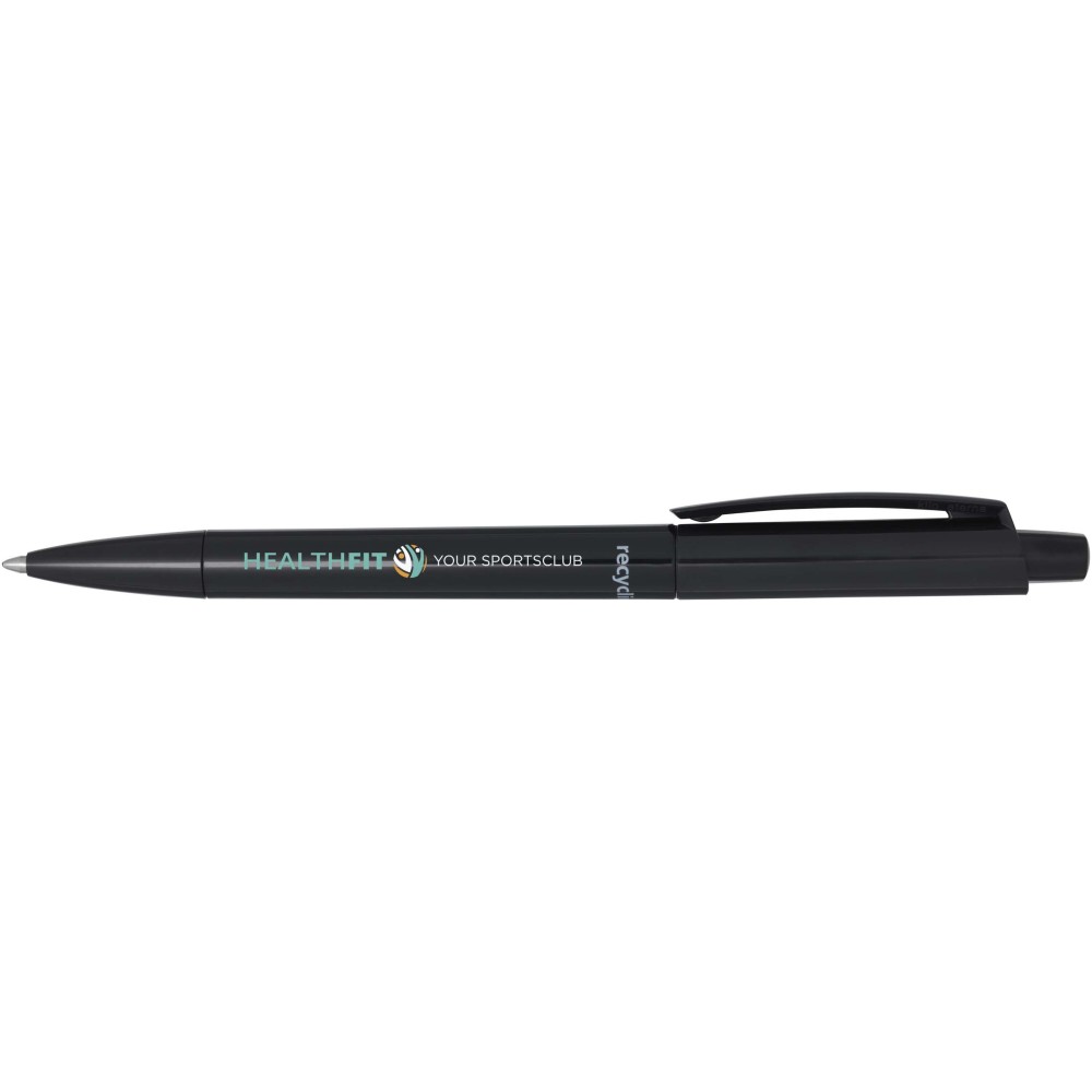 Golyóstoll, amelynek teste és klipsze újrahasznosított műanyagból, hegye pedig rozsdamentes acélból készült. Kék tollbetéttel. Íráshossz: 3000 méter. Hegyméret: 1,00 mm. Németországban készült. Emblémázás: Tamponnyomás