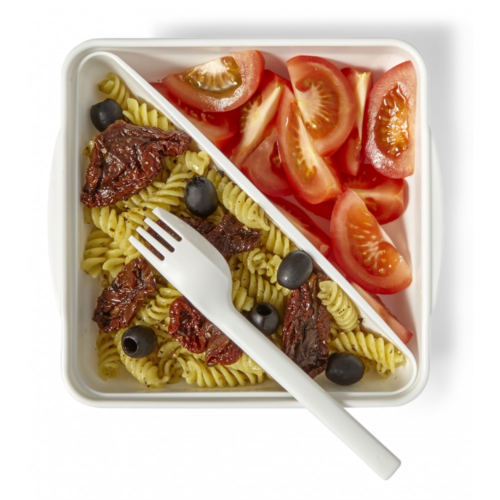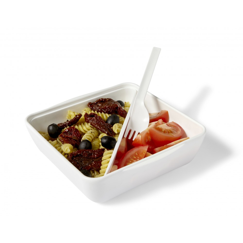 Ételdoboz villával, fehér