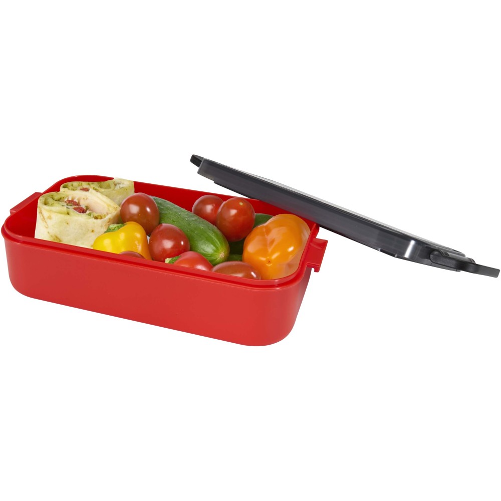 Tedd egyszerűvé az étkezést ezzel a stílusos ételtároló dobozzal és hozzáillő evőeszköz készlettel. Tágas rekesze frissen és rendezetten tartja az ételeket, így mindig készen állnak a fogyasztásra. A mellékelt evőeszközök a doboz tetején található külön rekeszben kaptak helyet, ami megkönnyíti a szállítást - tökéletes választás munkába, iskolába vagy utazáshoz. Emblémázás: UV nyomtatás