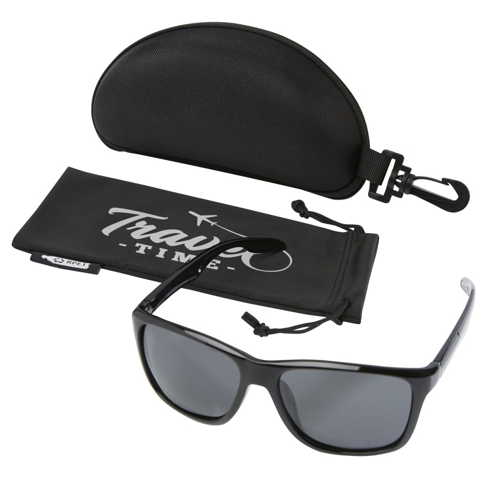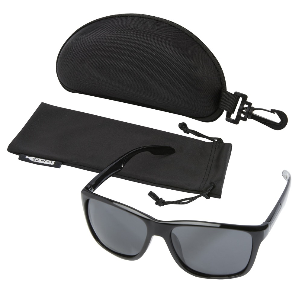 Növényi műanyagból készült polarizált napszemüveg. A csúcsminőségű keret és a szárak Rilsan Clear G850 Rnew-ból, a ricinusolaj polimer származékából készülnek. Ez az anyag fenntartható alternatívája a hagyományos műanyagoknak, és kiválóan alkalmas könnyű és rugalmas keretek készítésére a kényelmes szemüvegek érdekében. A lencsék polarizáltak, ami kiküszöböli a napfény visszaverődését, így ideális autóvezetéshez vagy egyéb napsütéses nyári vagy téli szabadtéri tevékenységekhez. Ez a szemüveg megfelel az EN ISO 12312-1 szabványnak, UV400-as lencsékkel rendelkezik, amelyek 3. kategóriájúak. Puha tárolótasak (18 x 9 cm), amely újrahasznosított PET műanyagból készült, és tisztítókendőként is funkcionál, kemény dobozba csomagolva. A tasak (18 x 8 x 6,5 cm), szintén újrahasznosított PET műanyagból. Emblémázás: Tamponnyomás
