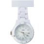Orvosok, ápolók számára készült óra, mely a köpeny mellzsebére tűzve viselője számára egyetlen fejbiccentéssel lehetővé teszi, hogy megtudja a pontos időt. Emblémázás: Tamponnyomás