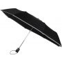Összecsukható automata esernyő. Szélálló kialakítás, fém váz, tépőzáras összefogó pánt és tok. Nyitása és záródása is automatikus. Emblémázás: Szitanyomás