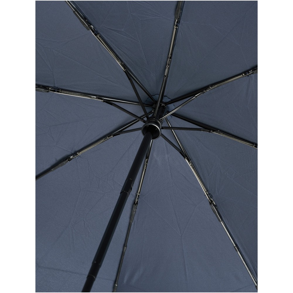 Összecsukható 21 -es esernyő. Erős fém váz, üvegszálas szerkezet. Fa nyele és az újrahasznosított RPET alapanyag miatt jó választás azok számára, akiknek fontos a fenntartható szemlélet. Emblémázás: Szitanyomás