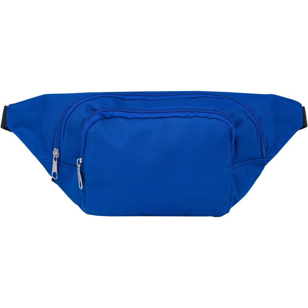 Két nagy cipzáros rekesz. Állítható övpánt, amely gyorsan kicsatolható. 600D poliészter. Emblémázás: Szitanyomás