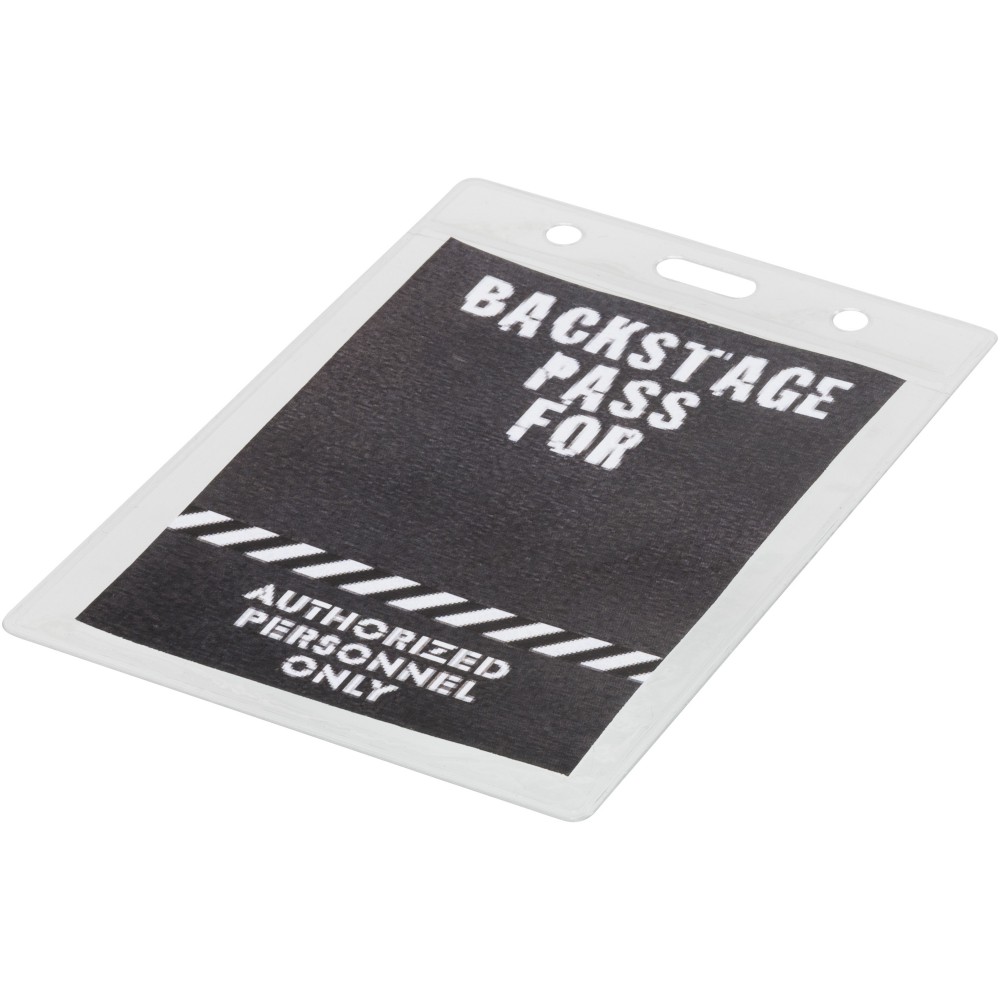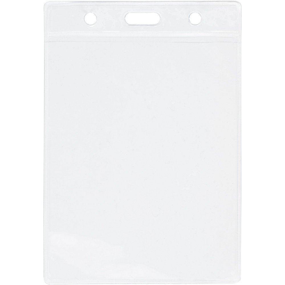 Névjegytartó vinyl tok, nyakpánthoz vagy badge-tartóhoz rögzíthető. Beilleszthető kártya mérete: 9,4 x 8,3 cm. Emblémázás: Tamponnyomás