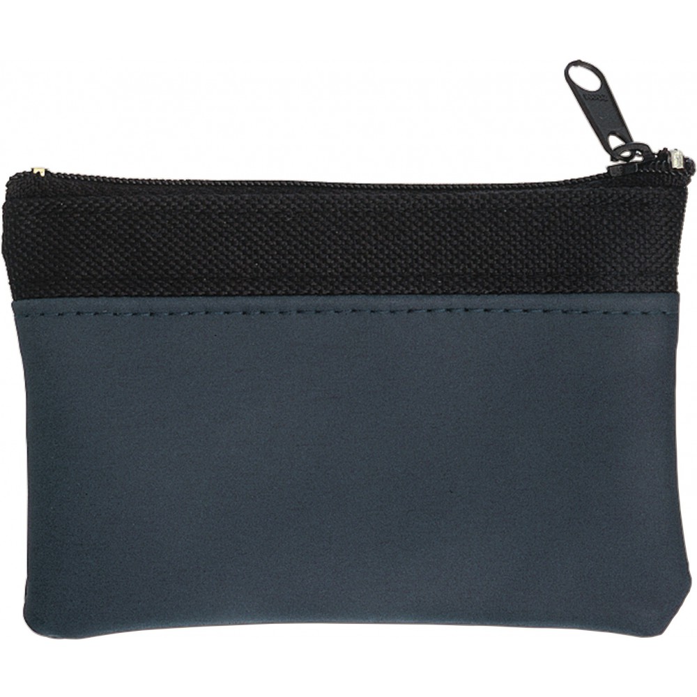 Kulcstartó cipzáras tárcában. 600D/gumis felületű műanyag. Emblémázás: Tamponnyomás