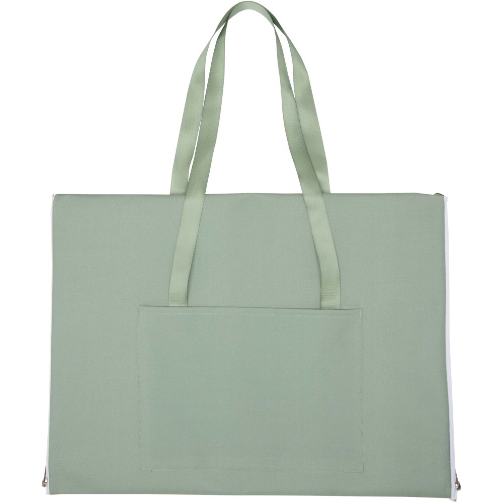 Élvezze a szabadban töltött időt maximális kényelemben a Laytote piknikpléddel, amely 600D poliészter anyagból és PVC bevonattal készült. Ez a kiváló minőségű anyag remek vízállóságot, tartósságot biztosít, és könnyen tisztítható. A szövött dizájn elegáns és stílusos megjelenést kölcsönöz, bármilyen kültéri környezethez illik. A pléd praktikusan összehajtható cipzáras záródással, két kis zsebbel rendelkezik apró tárgyak számára, valamint hordozófogantyúkkal van ellátva a könnyű szállítás érdekében. Mérete: 100 × 145 cm. Emblémázás: Szitanyomás
