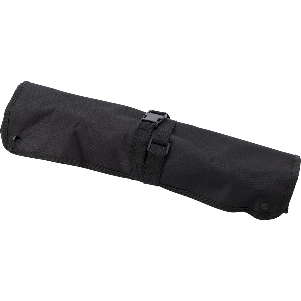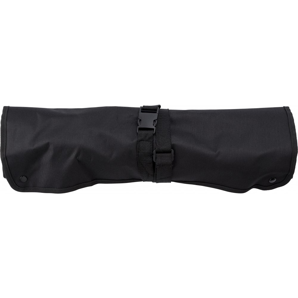 A zsebek tartalma: hússütő villa, kés, fogó, lapát, só- és borsszóró. Emblémázás: Szitanyomás, Tamponnyomás