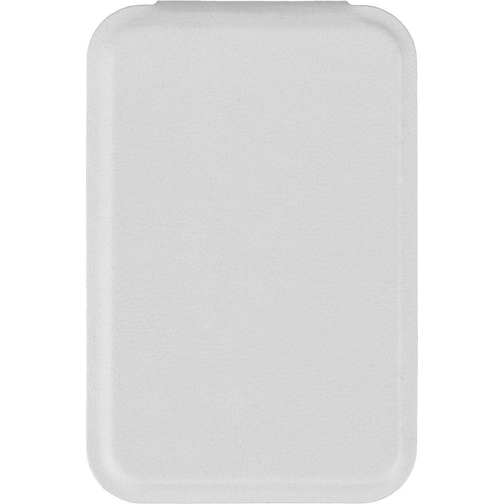 Üvegtükör összehajtható, újrahasznosított PU borítással, amely kinyitva álló helyzetben használható. A borításon dombornyomott, újrahasznosított alapanyagra utaló logó található. Papírtasakba csomagolva. Emblémázás: Tamponnyomás,