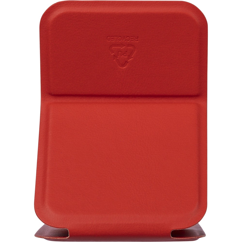 Üvegtükör összehajtható, újrahasznosított PU borítással, amely kinyitva álló helyzetben használható. A borításon dombornyomott, újrahasznosított alapanyagra utaló logó található. Papírtasakba csomagolva. Emblémázás: Tamponnyomás,