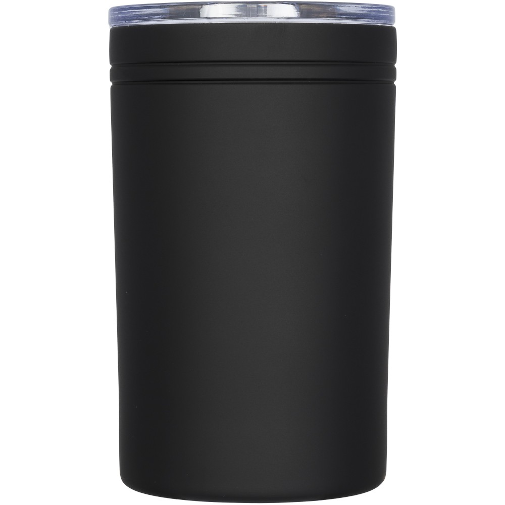 Duplafalas, vákuumos kialakítás. Nem szivárgásmentes. Szénsavas italokkal nem használható. Mosogatógépben nem mosható és mikrohullámú sütőben történő melegítésre nem alkalmas. Átlátszó, rápattintható kupak, elcsúsztatható záródással. Űrtartalom: 330 ml. Emblémázás: Gravírozás, Körszita, Tamponnyomás