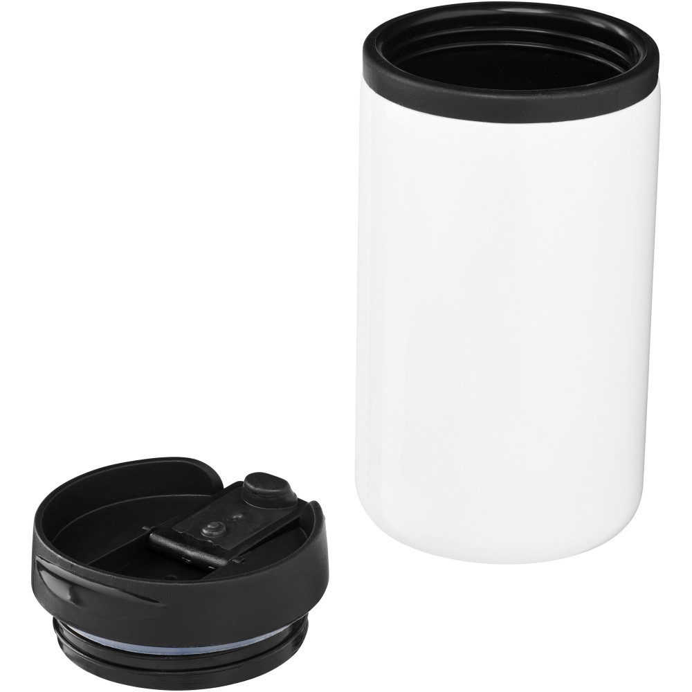 A Mojave szigetelt pohár hosszú ideig melegen tartja a forró italokat. Masszív, de letisztult kialakításának köszönhetően ezen a poháron elhelyezett logók felkeltik a figyelmet. A PP műanyag és a rozsdamentes acél kombinációja ellenáll a korróziónak és könnyen tisztítható. A csavaros fedél biztosítja a pohár könnyű nyitását és zárását. Nem szivárgásmentes. Szénsavas italokkal nem használható. Mosogatógépben nem mosható és mikrohullámú sütőben történő melegítésre nem alkalmas. Űrtartalom: 300 ml. Emblémázás: Gravírozás, Körszita, Tamponnyomás, UV nyomtatás