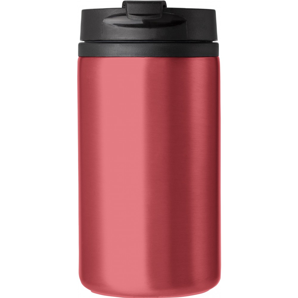 Duplafalú termoszpohár. A külső fal rozsdamentes acél, a belső fal műanyag. A csavaros fedél szivárgásmentes. A pohár alja csúszásgátlóval van ellátva. 300 ml. BPA-mentes műanyag. Nem mosogatógépálló termék. Emblémázás: Gravírozás, Körszita, Tamponnyomás