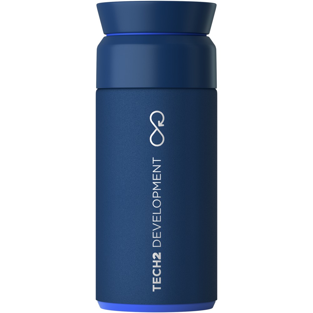A 350 ml-es Ocean Bottle nagyszerű választás forró italok számára utazás során. A palack újrahasznosított rozsdamentes acélt és újrahasznosított óceáni műanyagot tartalmaz. Egy palack gyártásához 1000 műanyag palackot gyűjtöttek össze, így javítva a tengerparti közösségek megélhetését. NFC Smart Chip-pel rendelkezik, hogy több műanyag gyűjtését támogassa minden utántöltéskor. Az innovatív 360 fokos fedél lehetővé teszi az aromák cirkulálását, az újrahasznosított rozsdamentes acél kettős hőszigetelése pedig akár hat órán keresztül is melegen tartja az italokat. Emblémázás: Gravírozás, Tamponnyomás