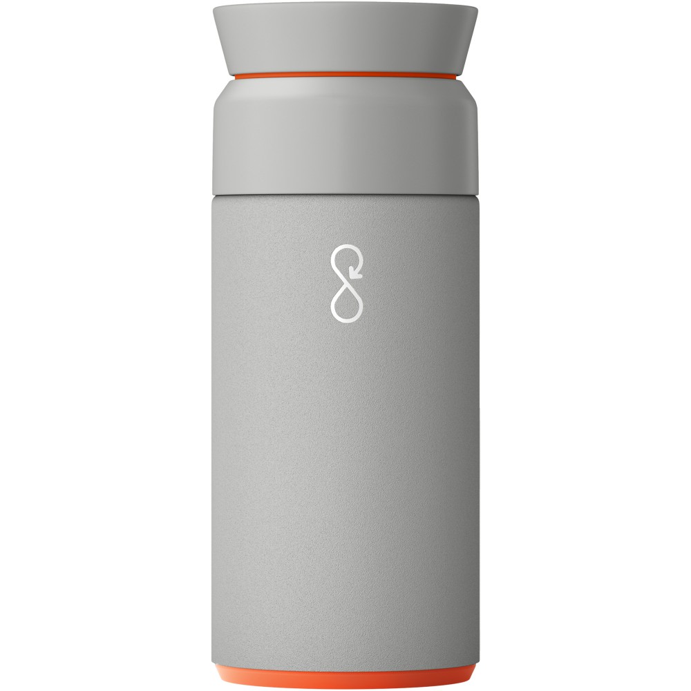 A 350 ml-es Ocean Bottle nagyszerű választás forró italok számára utazás során. A palack újrahasznosított rozsdamentes acélt és újrahasznosított óceáni műanyagot tartalmaz. Egy palack gyártásához 1000 műanyag palackot gyűjtöttek össze, így javítva a tengerparti közösségek megélhetését. NFC Smart Chip-pel rendelkezik, hogy több műanyag gyűjtését támogassa minden utántöltéskor. Az innovatív 360 fokos fedél lehetővé teszi az aromák cirkulálását, az újrahasznosított rozsdamentes acél kettős hőszigetelése pedig akár hat órán keresztül is melegen tartja az italokat. Emblémázás: Gravírozás, Tamponnyomás