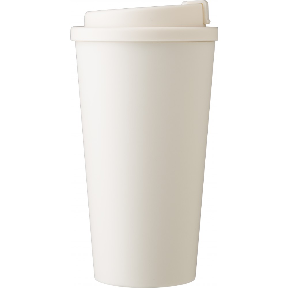 Kávéspohár csavaros fedéllel és felpattintható ivórésszel. Űrtartalom: 475 ml. PP műanyag. Emblémázás: Tamponnyomás