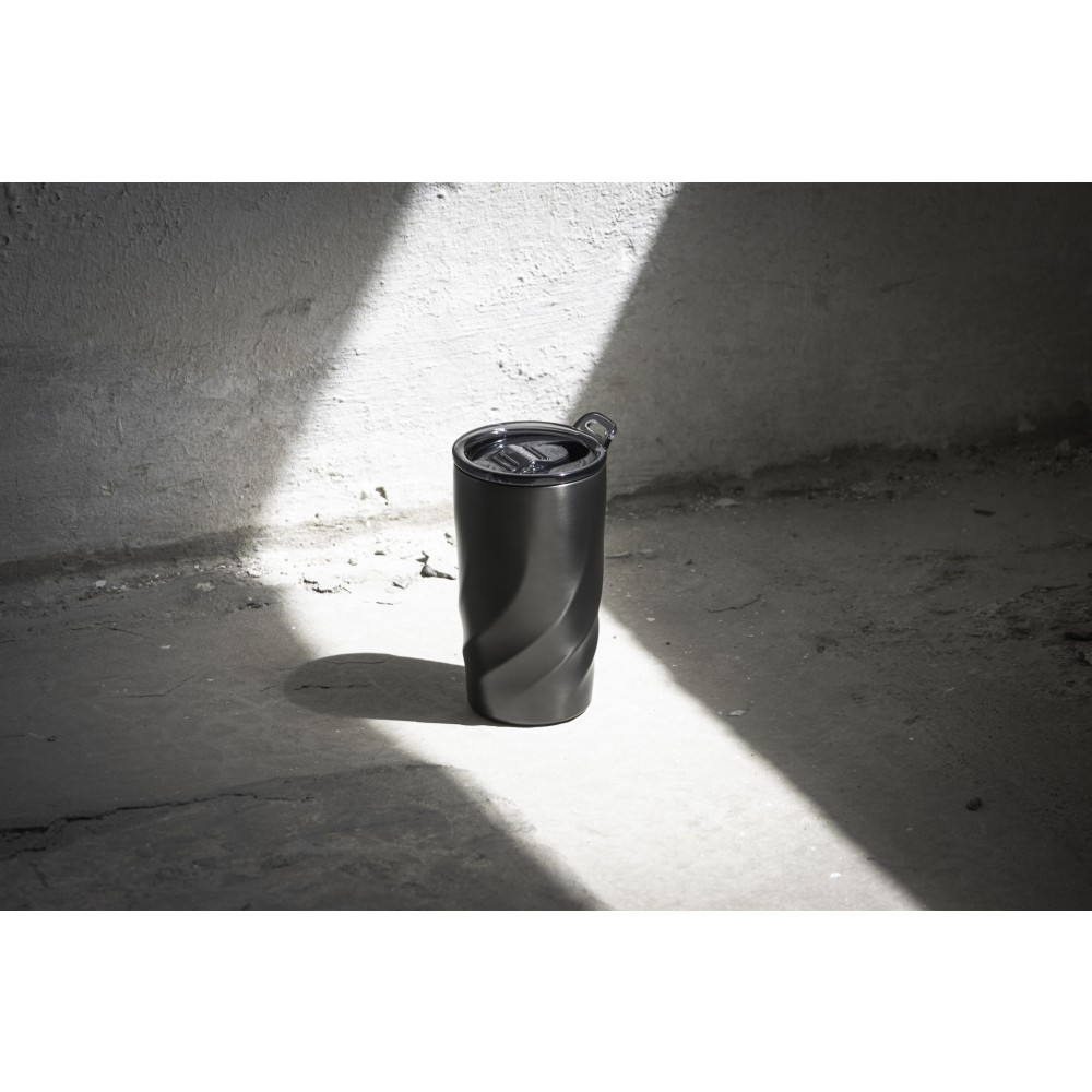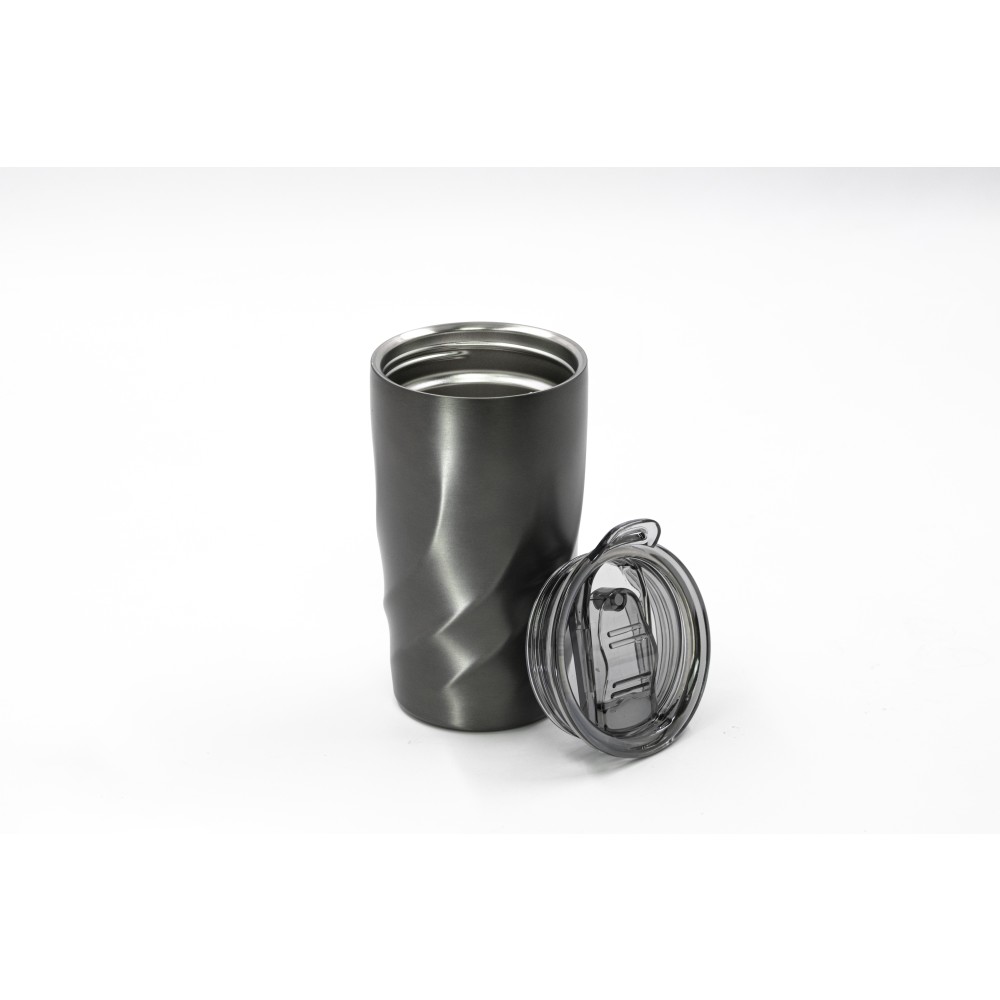 A Vortex Calix utazóbögre ötvözi a luxust és a fenntarthatóságot, újrahasznosított 304 rozsdamentes acélból készült, a környezettudatos stílus megnyilvánulásaként. A csavaros, szivárgásmentes fedéllel ellátott bögrét úgy tervezték, hogy habzó italokat is tarthassunk benne, a kupak pedig egy hordozóhurokkal rendelkezik, amelyhez opcionális vállpánt csatlakoztatható. A Coppertech duplafalú szigeteléssel ez a 400 ml-es pohár akár 12 órán át hidegen, vagy 4 órán át melegen tartja az italokat. A tartós és mosogatógépben mosható Vortex Calix egyszerre kínál funkcionalitást és tartós hőmérséklet-szabályozást az italok számára. Emblémázás: Gravírozás