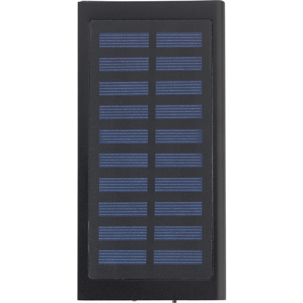 Napelemes powerbank 8000 mAh kapacitással. Bemenet: DC5V/1A. Kimenet: DC5V / 1A és DC5V / 2.1A. A vezetéket USB to micro USB csatlakozóval tartalmazza. ABS műanyag és alumínium. Veszélyes áru, csomagban nem küldhető. Emblémázás: Tamponnyomás