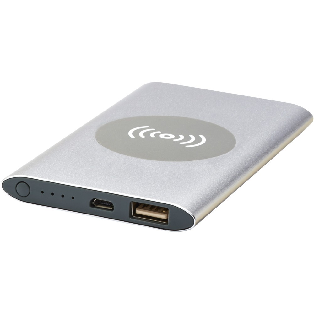 4000 mAh-s powerbank alumínium házzal. 5W vezeték nélküli töltést támogat, és a Micro USB kimenettel is rendelkezik, hogy lehetővé tegye a kábellel történő töltést. A 4000 mAh lítiumpolimer akkumulátorral egy okostelefon teljes töltésére alkalmas. Teljesítményjelzőjén követhető a töltöttségi szint. Micro USB port-in: 5V / 2A kimenet: 5v / 2a. Vezeték nélküli kimenet 5W. Tartalmazza a PVC-mentes TPE műanyag töltőkábelt. Csomagolása díszdoboz. Emblémázás: Gravírozás
