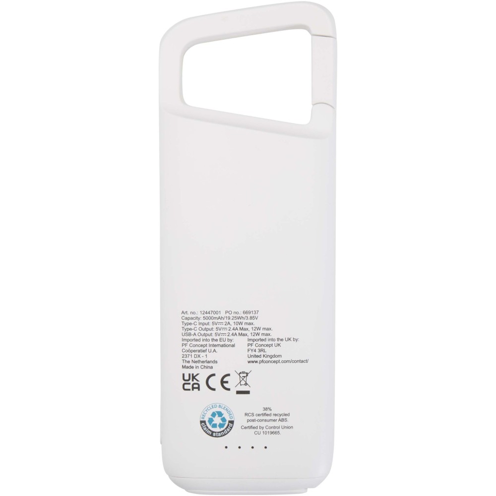 Maradj feltöltve útközben az Alkes 5000 mAh powerbank segítségével, amely újrahasznosított műanyagból készült. Kifejezetten kültéri használatra tervezve beépített karabinerrel és vízálló kialakítással (IPX5) rendelkezik, amely ellenáll az alacsony nyomású vízsugárnak, például esőnek. A USB portokat szilikon fedél védi, míg a LED jelző mutatja a töltés állapotát. Ideális túrázáshoz, kempingezéshez vagy mindennapi utazáshoz. Emblémázás: Matricázás, Tamponnyomás, UV nyomtatás
