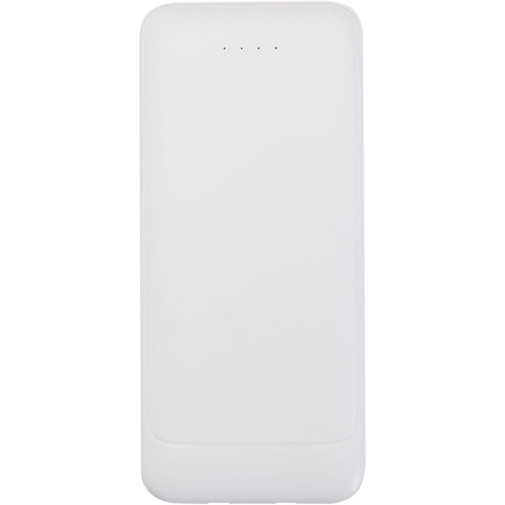 Adhil 10.000 mAh powerbank: Az Adhil 10.000 mAh-s powerbank újrahasznosított műanyagból készül, kompakt kialakítása egyszerre stílusos és praktikus. Két beépített kábellel rendelkezik: egy Type-C, valamint egy Lightning/microUSB kombinált csatlakozóval, továbbá két USB-A kimenettel és egy Type-C bemenet/kimenettel, így sokoldalú töltési lehetőségeket kínál. Az LED-jelző mutatja a töltési állapotot, így útközben is megbízható energiaforrás. Emblémázás: Tamponnyomás, UV nyomtatás