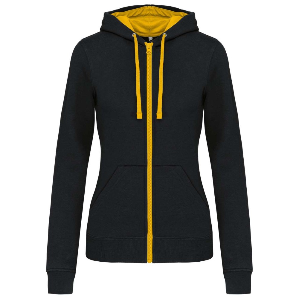 Kariban Contrast női kapucnis pulóver, Black/Yellow