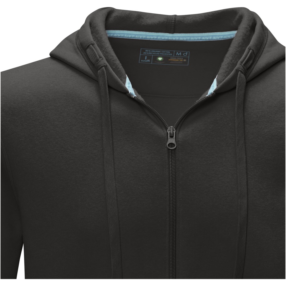 Kapucnis pulóver fenntartható, tanúsított organikus pamutból (a húzózsinór is) és GRS újrahasznosított poliészterből és cipzárral. Kenguru zseb. Belül bolyhos, puha anyag. Bordás ujjpasszé és alj. Kétszínű, márkázott szalagerősítés a nyakban. Félhold alakú betét a nyakban. 80% tanúsított organikus pamut és 20% tanúsított újrahasznosított poliészter, 280 g/m2. Emblémázás: Hímzés, Szitanyomás