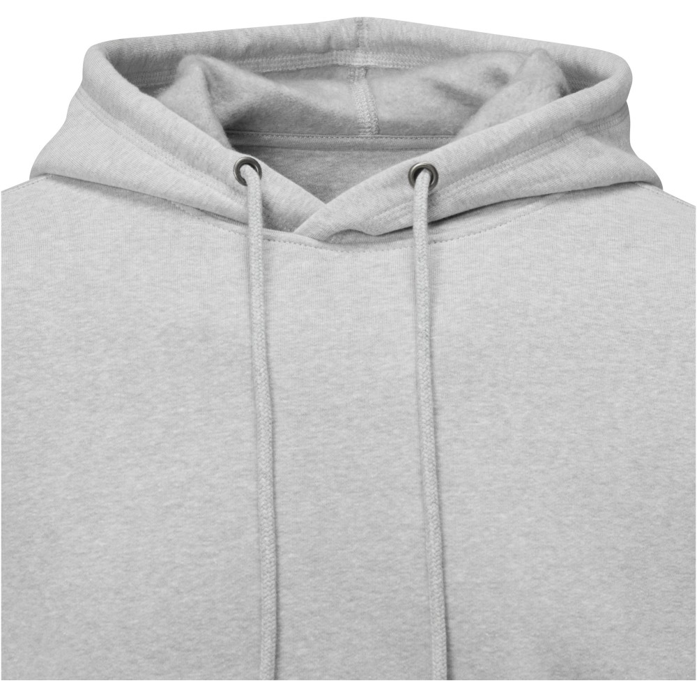 Belső emblémázási lehetőség. Letéphető, kivágható címke. Zsinór a kapucniban. Kenguru zseb. Lapos kötésű bordás alsó szegély. Lapos kötésű bordás mandzsetta. Bolyhos belső felület. Saját anyagából készült nyakszalag. Kötött anyag 50% pamut és 50% poliészter, 240 g/m2. Emblémázás: Hímzés, Szitanyomás