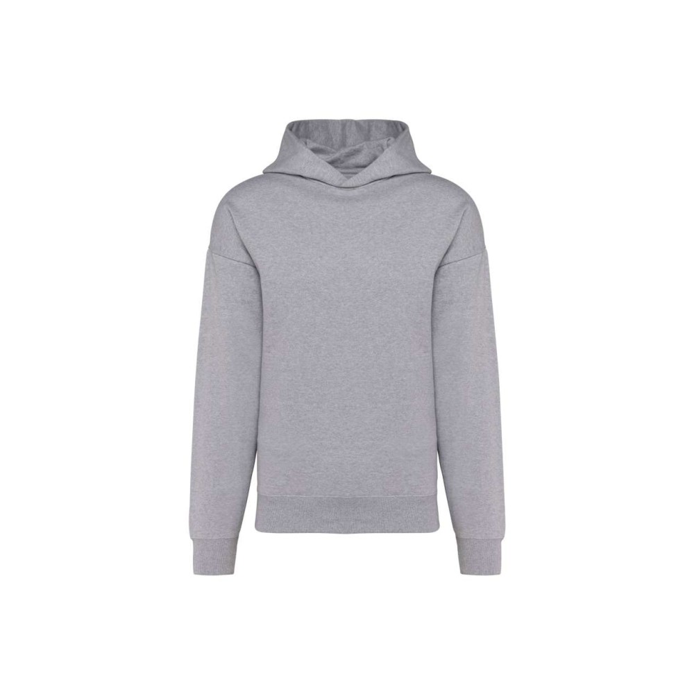 80% cotton / 20% polyester. Oversized fit with dropped shoulders. Brushed fleece. Carded cotton. 1x1 ribbing with a tubular finish on the cuffs and hem. Hidden pocket with invisible zip in the seam on the right side when worn. Cotton hood with double dart. Elastane in the ribbing on the cuffs and at the bottom of the garment to prevent them from going out of shape. Matching twill taped neck. Half-moon finish inside neck. Double overlaid overstitching on cuffs and bottom hem. No brand label on the collar. only a size tag for easy decoration. Emblémázás: Hímzés, Szitanyomás