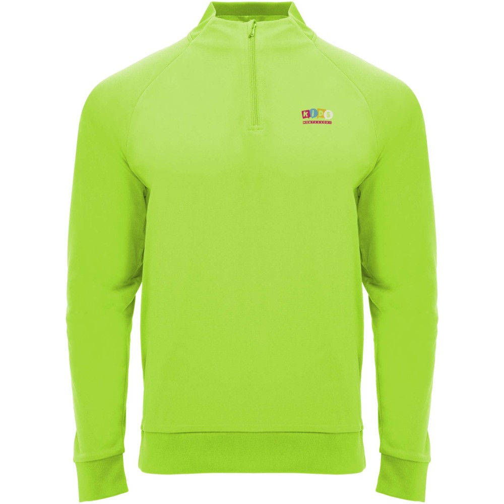 Technikai anyag. Raglán ujjak. Belül bolyhos anyag. Negyedcipzár azonos színű megerősített, fedett öltésekkel. Bordázott nyak-, ujj- és aljpasszé. Eltávolítható címke. Emblémázás: Hímzés, Szitanyomás