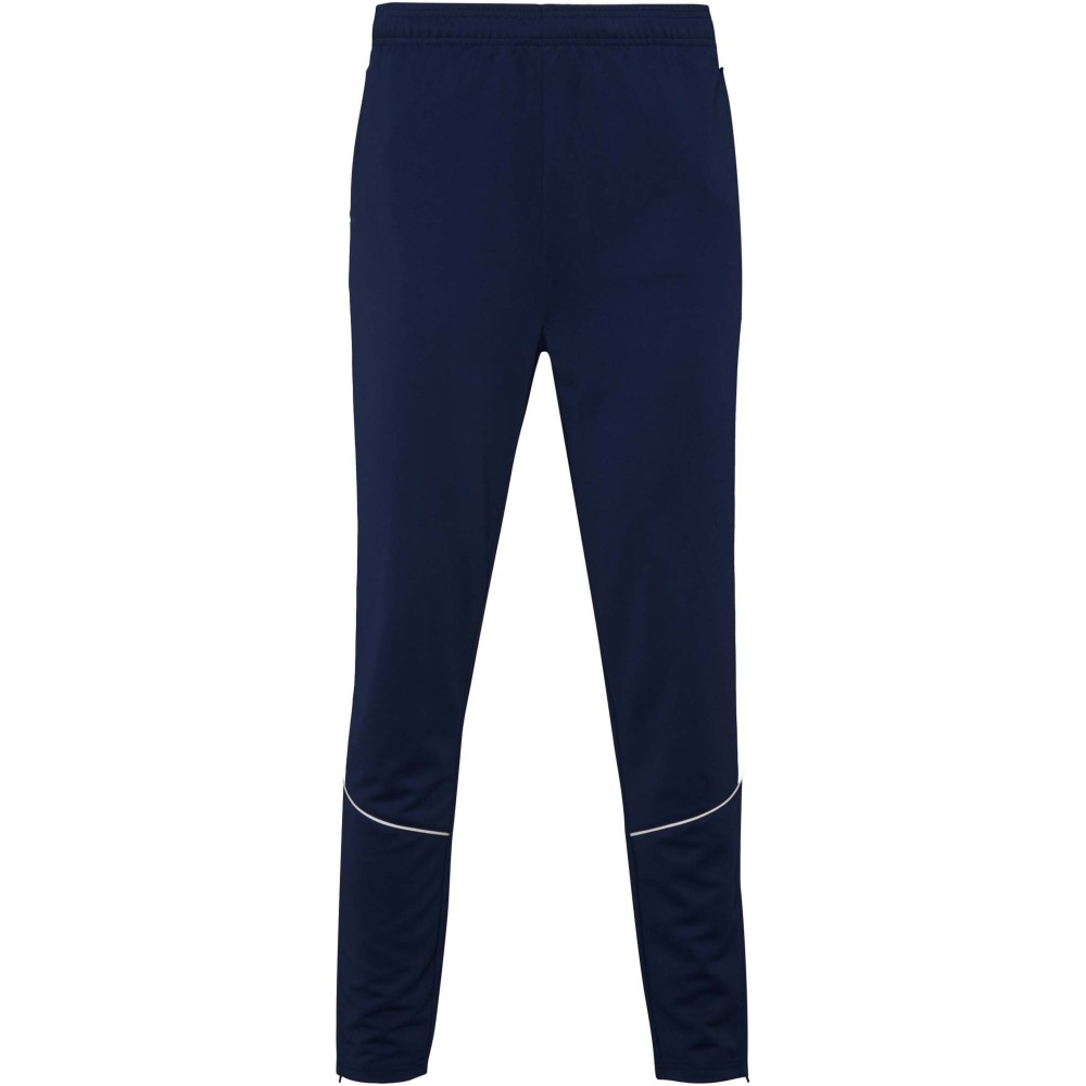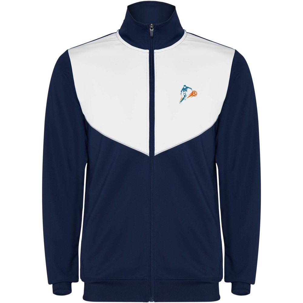 Könnyű és rugalmas anyagból készült melegítő. A végig cipzáros felső kontrasztos színű és varrású díszítésekkel dekorált a mellrészen. Oldalzsebek. Bordázott ujj- és és derékpasszé. Nadrág gumis derékkal és húzózsinórral, kontrasztos oldalsó varrással. Cipzáras szegély. Emblémázás: Hímzés, Szitanyomás