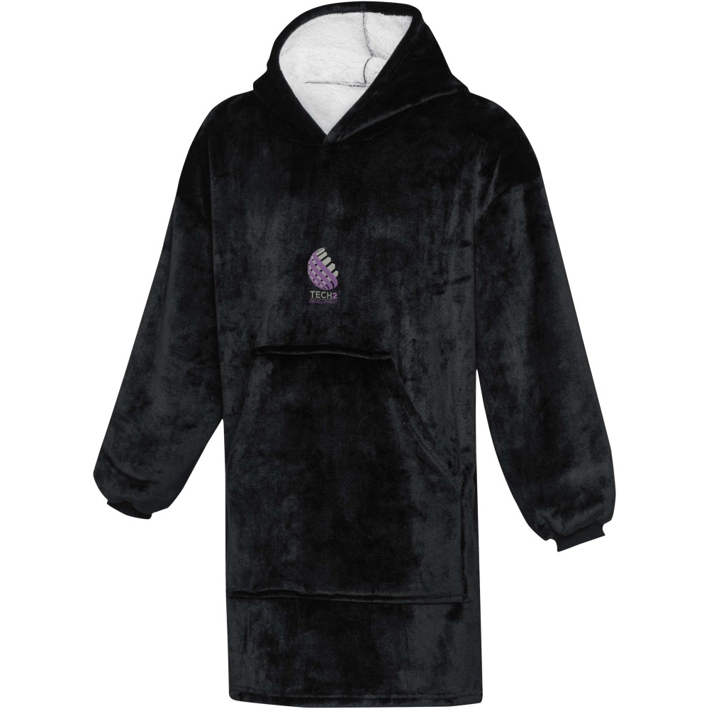 Kapucnis takaró? Kabát? Pulóver? Döntsd el te! 100% GRS tanúsítvánnyal rendelkező poliészter flanelből készült kívül, és 100% GRS poliészter fehér sherpa bélés található belül. Az oversized dizájn maximális kényelmet biztosít, tökéletes pihenéshez a kanapén vagy kempingezéshez a csillagok alatt. Stílusos kapucnis kialakítása és praktikus elülső zsebe kombinálja a praktikumot a divatos megjelenéssel. Emblémázás: Hímzés