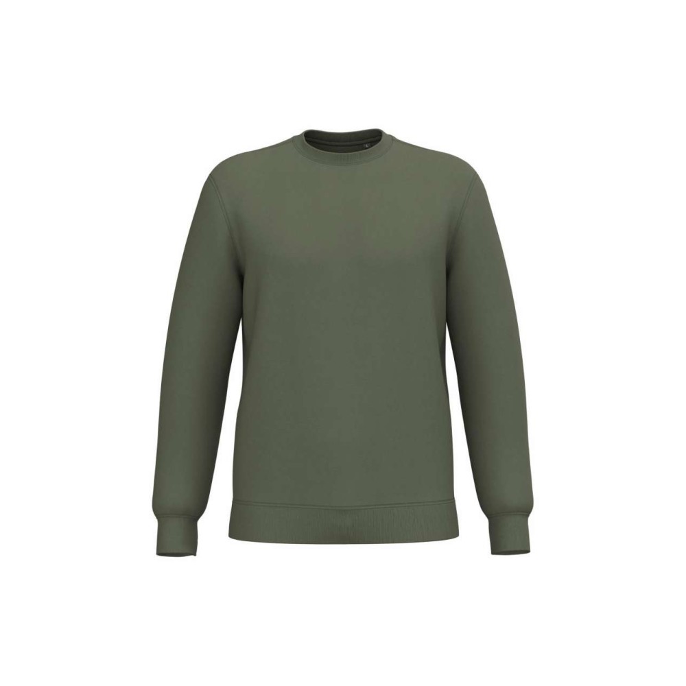 280 g/m2, 50% gyűrött pamut/50% újrahasznosított poliészter. Csiszolt polár anyag, egyenes szabás, környakas fazon. Vágott és varrott, 1x1 bordás, csőszerű összeállítás a nyakvonal, a mandzsetták és az alsó szegély jobb kiviteléért. Tónusban megegyező jersey szalag a nyakvonal belsejében. Nincs márkajelzés a nyakvonalon, csak méretcímke a könnyű dekorálás érdekében. Emblémázás: Hímzés, Szitanyomás
