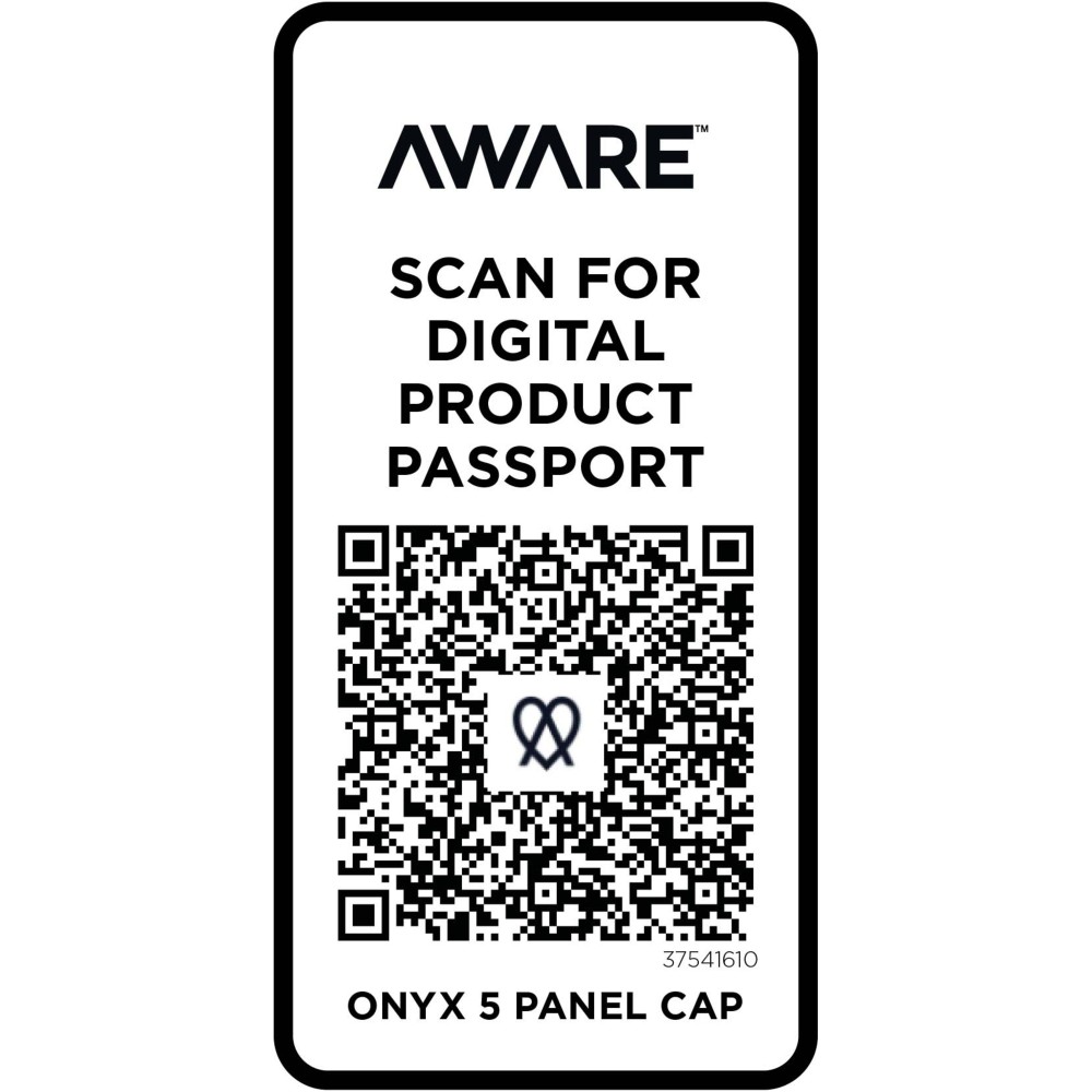 Az Onyx 5 paneles sapka 70%-ban újrahasznosított pamutból és 30%-ban újrahasznosított poliészterből készült. Úgy tervezték, hogy 58 cm-es fejkörfogatnál kényelmesen illeszkedjen, a fémcsatos záródás pedig könnyű és biztonságos beállítást tesz lehetővé. A sapka Cyclo újrahasznosított szálakat tartalmaz, ahol előválogatott hulladékot használnak, amely meghatározza a fonal színét. Ezek a szálak nem csak a szűz erőforrások iránti igényt csökkentik, hanem a körkörös élet iránti elkötelezettséget is mutatják, megtestesítve a hulladékcsökkentés lényegét. Minden sapkához egy Aware nyomjelző is tartozik. Ez az innovatív funkció lehetővé teszi a felhasználók számára, hogy egy QR-kód segítségével nyomon követhessék a termék eredetét és útját, növelve az ellátási lánc átláthatóságát, és elősegítve a termék és a gyártási folyamat közötti szorosabb kapcsolatot. Emblémázás: Hímzés, Szitanyomás