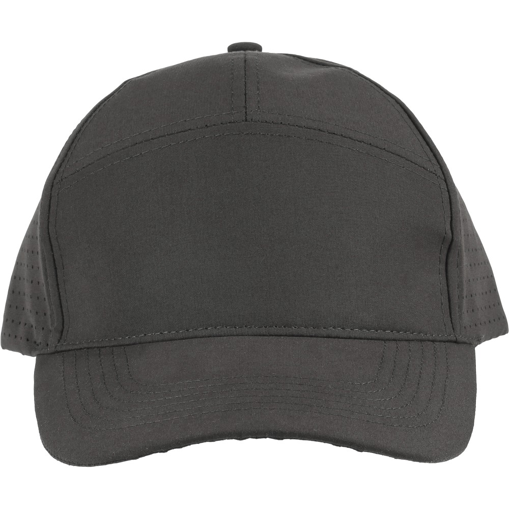 7 paneles poliészter baseballsapka lézervágott szellőzőnyílásokkal a hátsó paneleken. 7 cm-es ellenzővel, tépőzárral állítható pánttal, PU címke nélkül. Emblémázás: Hímzés, Szitanyomás