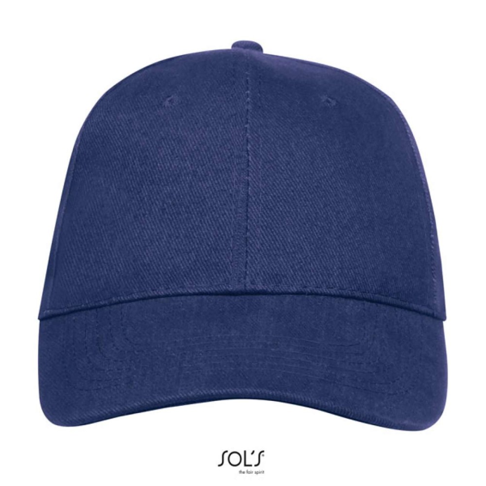 100% pamut vastag anyag, 260 g/m2. Formázott simléder, szellőzőnyílások, fém csattal fejméretre állítható. Emblémázás: Hímzés, Szitanyomás