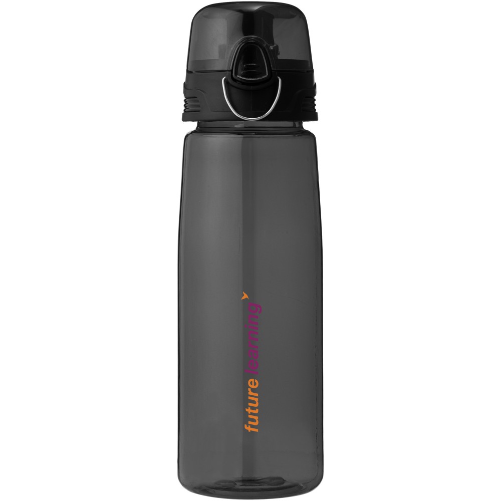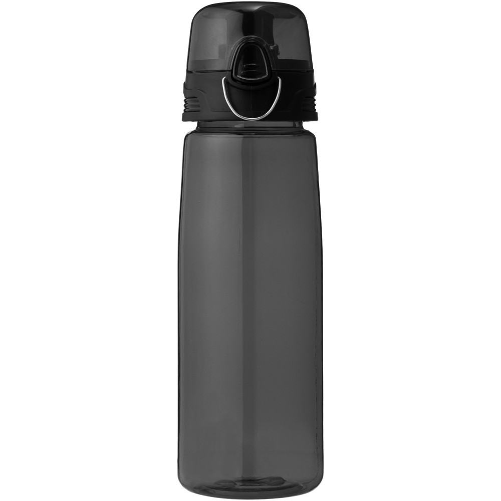 Nagy melegben a könnyű Capri sportpalack életmentő lehet. A palacknak felnyitható ivófedele van kifolyóval, így védve és tisztán tartja. A nyomógomb megkönnyíti a nyitást. Az átlátszó palack szilárd folt- és szagmentes Eastman Tritan anyagból készült, így tartós és BPA-mentes. Szivárgásmentes. Szénsavas italokkal nem használható. Mosogatógépben nem mosható és mikrohullámú sütőben történő melegítésre nem alkalmas. Űrtartalom: 700 ml. Emblémázás: Körszita, Tamponnyomás