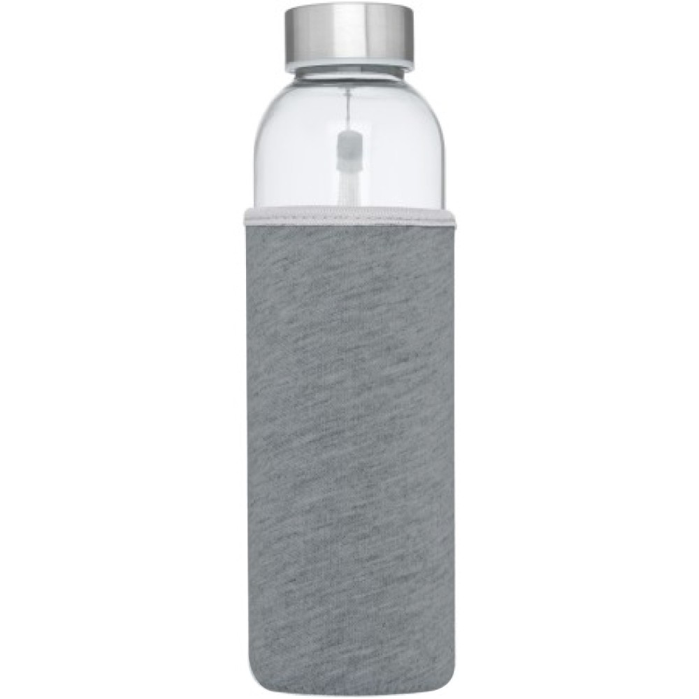 Egyfalú üvegpalack csavaros tetővel, Neoprén borítással. Hideg italokhoz ajánlott. Szivárgásmentes. Szénsavas italokkal nem használható. Mosogatógépben nem mosható és mikrohullámú sütőben történő melegítésre nem alkalmas. Űrtartalom: 500 ml. Csomagolása díszdoboz. Üveg, Neoprén, rozsdamentes acél. Emblémázás: Bögredekor, Gravírozás, Szitanyomás