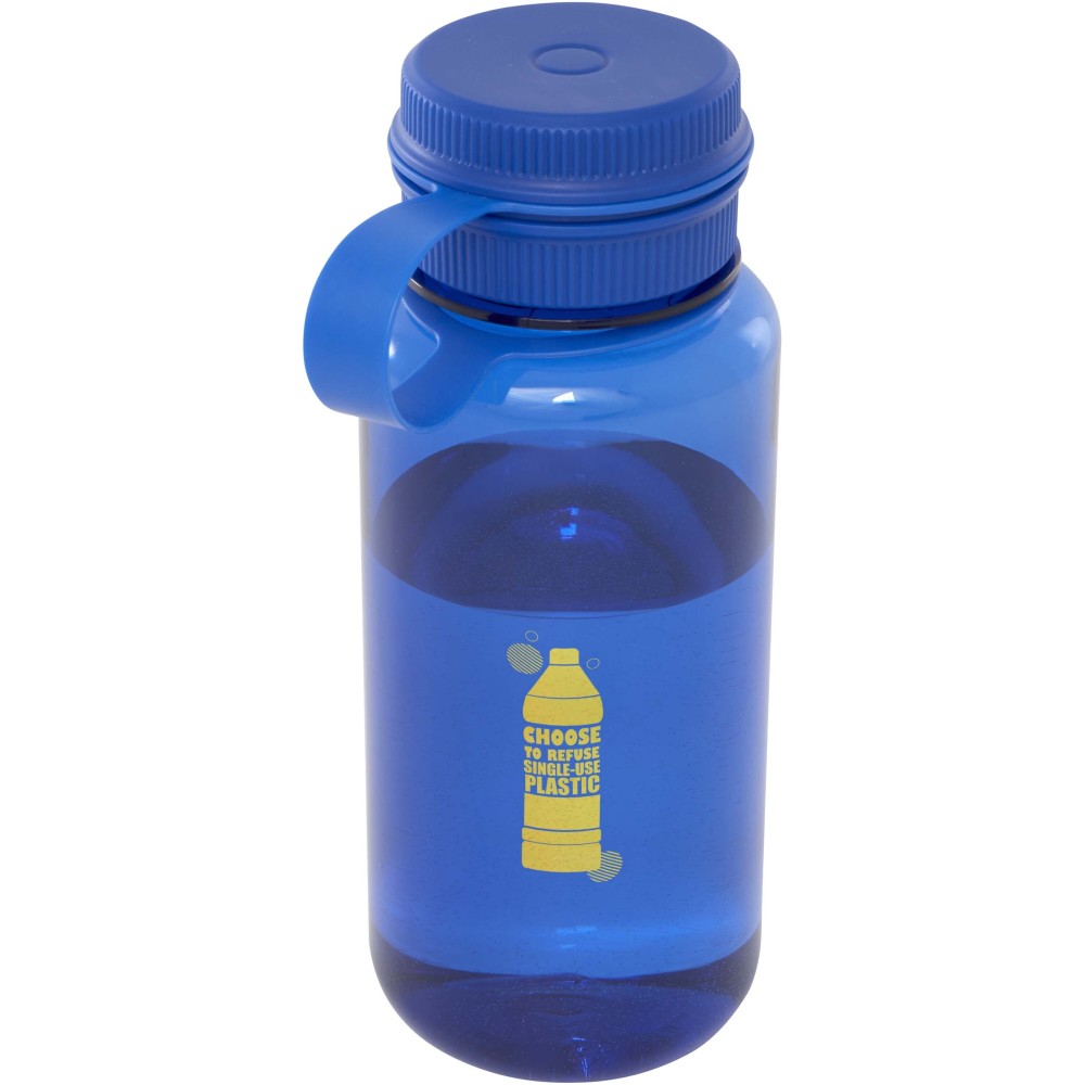 Egyfalú sportpalack RCS tanúsítvánnyal rendelkező RPET-ből, csavaros tetővel, szivárgásmentes fedéllel és fogantyúval. Kettős nyitású kialakítás a könnyű tisztítás és töltés érdekében. Az EFSA által jóváhagyott (Európai Élelmiszerbiztonsági Hatóság) PET újrahasznosítási folyamatnak megfelelően készült. Űrtartalma: 900 ml. Emblémázás: Tamponnyomás