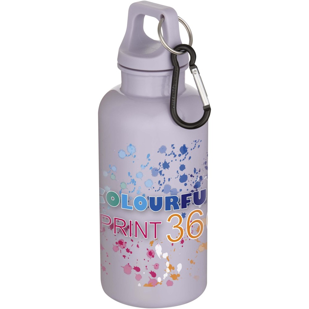 Az RCS tanúsítvánnyal rendelkező RPET-ből készült, tartós, mégis könnyű, 400 ml-es kulacs lehetővé teszi a folyamatos hidratálást. Tökéletes kísérő sportoláshoz, kirándulásokhoz vagy irodai használatra. A szimplafalú Oregon palack csavaros kupakkal rendelkezik, és bőséges felületet kínál bármilyen logó elhelyezésére. A mellékelt karabiner segítségével (mely mászásra nem alkalmas) a kulacs biztonságosan táskához rögzíthető. A termék megfelel az EFSA által jóváhagyott PET újrahasznosítási szabályoknak. Emblémázás: Tamponnyomás